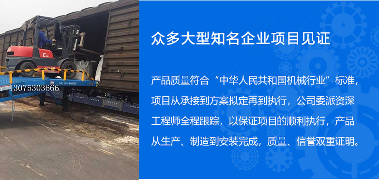 濟南歐亞達力升降機械有限公司是一家集設計、研發、生產和銷售于一體的制造型企業,專業制造液壓登車橋,移動式登車橋和高空作業平臺,公司處于素有”泉城“美稱的山東省濟南市腹地,坐落于220國道旁的省級開發區濟北開發區工業園內,南依泰山,北跨黃河。 公司產品具有設計新穎、結構合理、升降平穩、載重安全、操作簡單、維護方便等優點。產品廣泛應用于各個行 業,如工礦企業、生產流水線、鐵路、機場、軍用、車站碼頭、貨物裝卸升舉、廠房工地、倉儲物流、高空設備安裝等場合